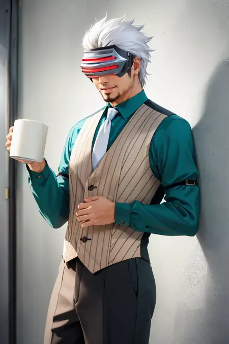 默认服装: shirt, necktie, vest, pants