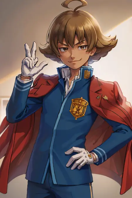 デフォルトの服装: ジャケットを肩にかけた、学ラン、バッジ、長袖、ズボン、白い手袋