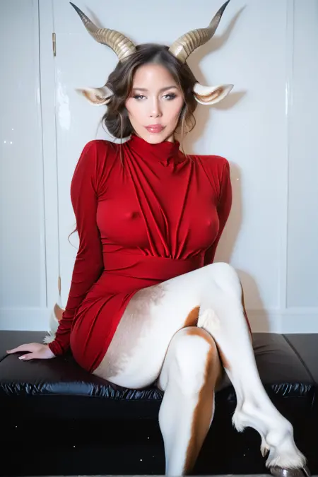 goat horns, goat ears, furry goat legs, hooves, goat tail