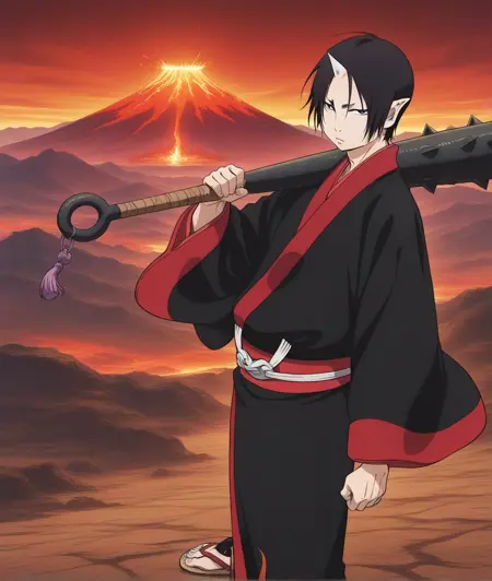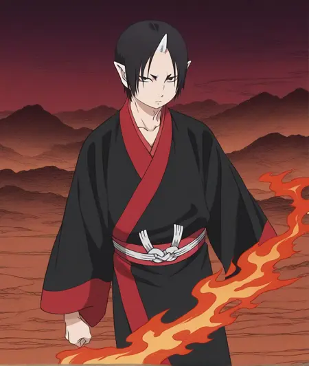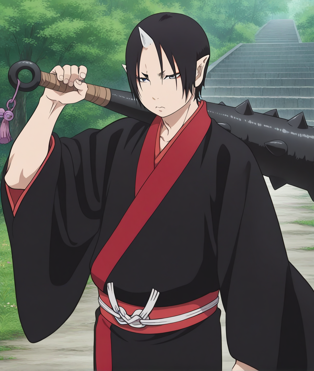 hoozuki, 1boy, black hair, black eyes, oni, kimono,