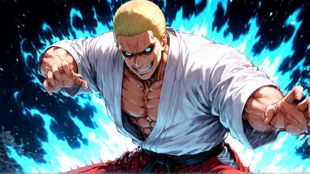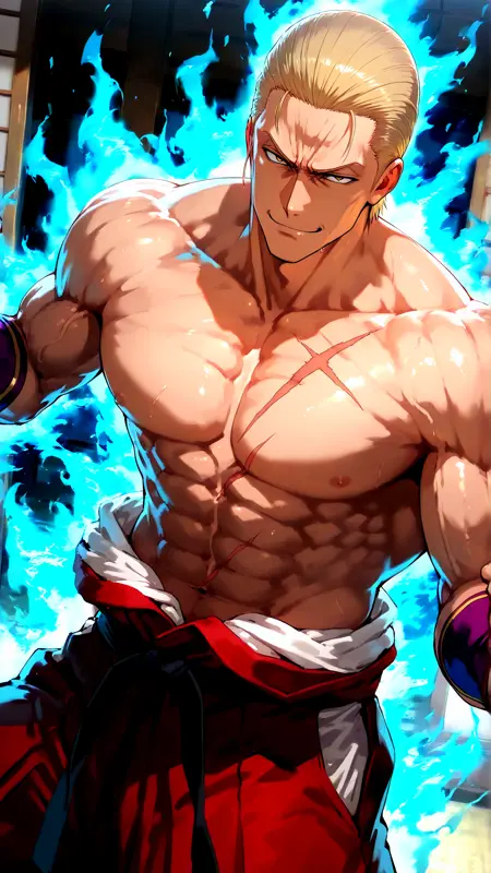 외모: 성숙한 남성, 금발, 악랄한 눈빛, 진지함, 근육질, 머리 뒤로 빗어넘김,