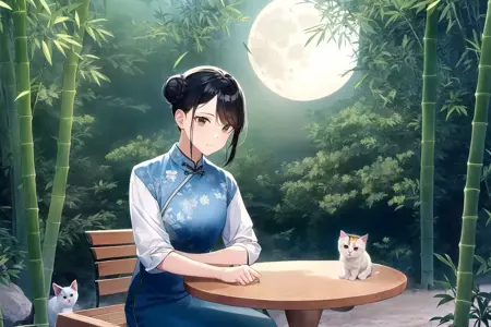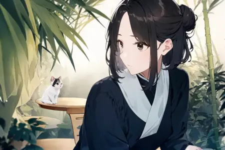 「竹」や「葉」、「花」などのキーワードをプロンプトに含める場合、一部の植物や背景が彼の工筆スタイルの影響を受けることがある。