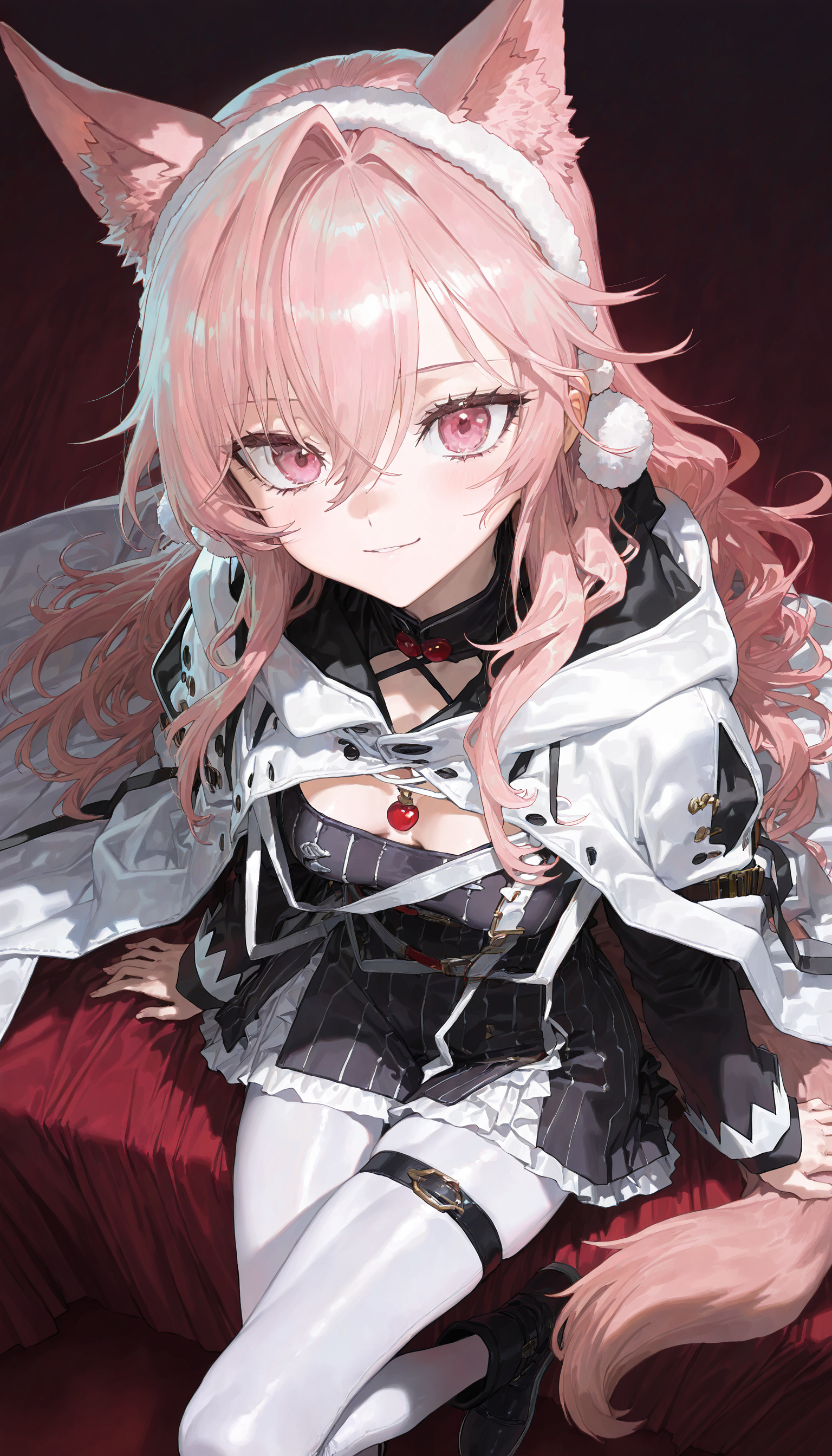 pink hair,pink eyes, hairband, wolf tail, wolf ears,