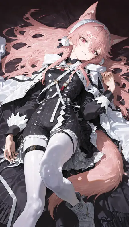 pink hair,pink eyes, hairband,wolf tail,wolf ears,