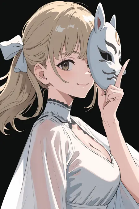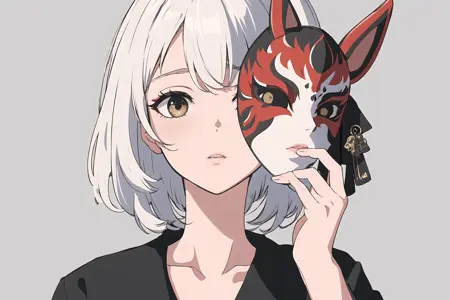 When using this Lora, describe the mask type as much as possible, such as a fox mask: "fox mask", "skull mask", "cat mask", etc. This can avoid generating some weird-shaped things.