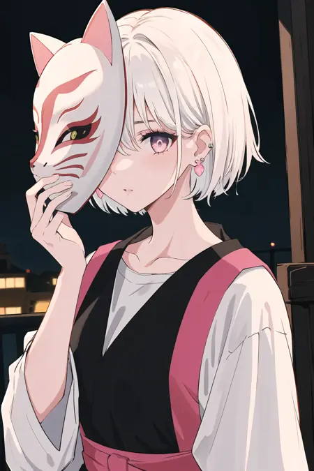When using this Lora, describe the mask type as much as possible, such as a fox mask: "fox mask", "skull mask", "cat mask", etc. This can avoid generating some weird-shaped things.