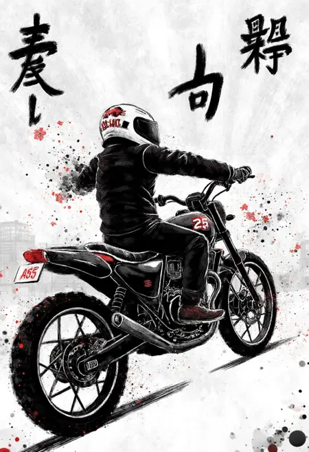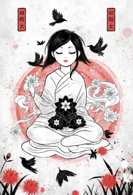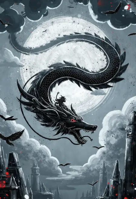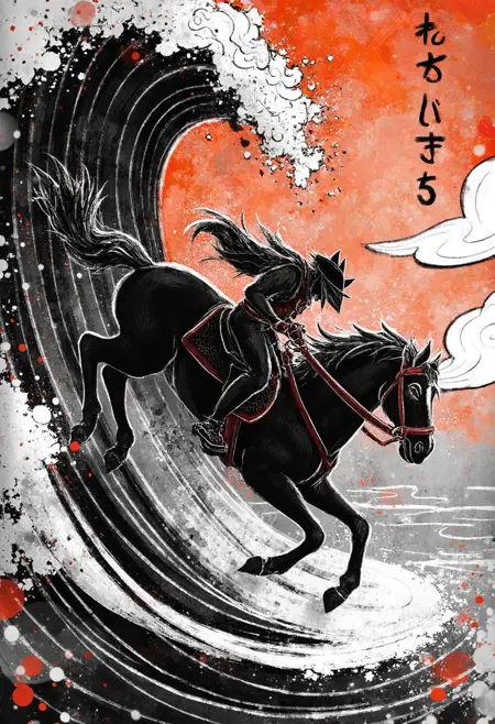 Based on a Japanese black and red painting style, done by artist Ruby Art