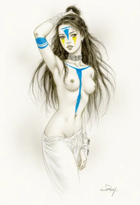 我向你介绍一款基于西班牙艺术家 Luis Royo 作品的 LoRA 风格。他的奇幻风格极为出色,细节丰富,背景经过精心处理,擅长描绘美丽的女性。