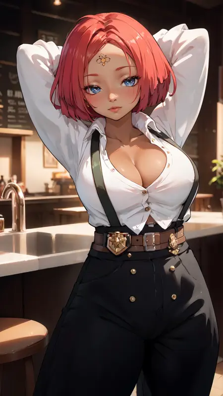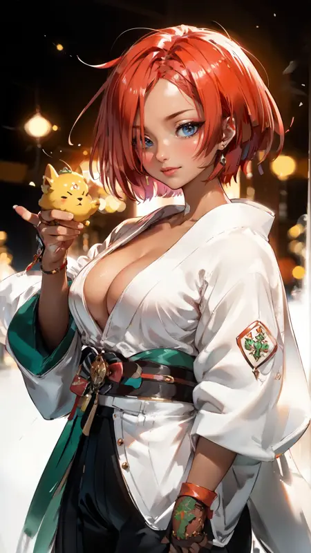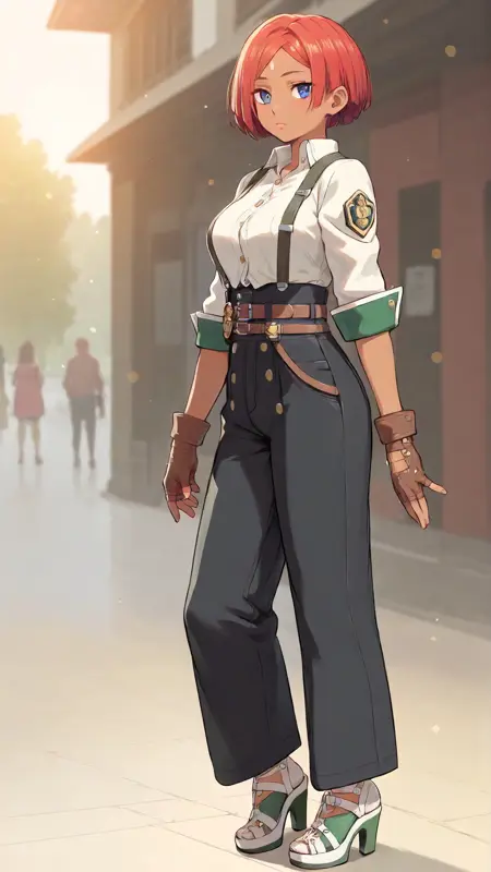 예시 프롬프트: "giovanna_strive, 애니메이션 소녀, 1girl, 가슴, 단발, 파란 눈, 장갑, 흰 배경, 전체 신체, 붉은 머리, 벨트, 검은 피부, 손가락 없는 장갑, 검은 피부를 가진 여자, 얼굴 문양, 어깨끈, 1other, 갈색 장갑, 이마 문양, 플랫폼 신발, 늑대, 여러 개의 벨트, 허리 높은 바지, 플랫폼 힐"