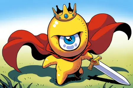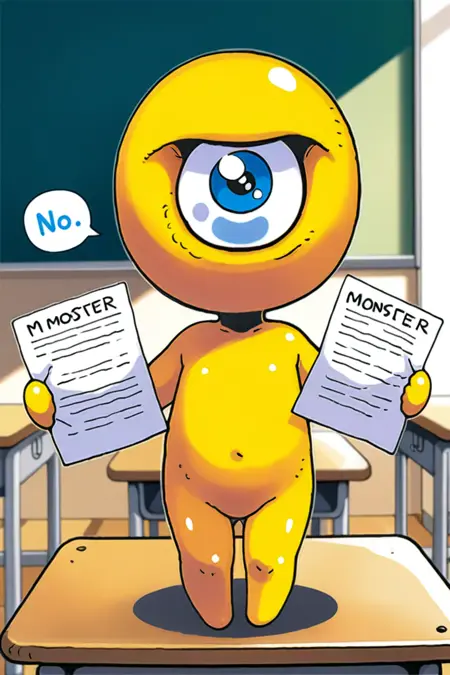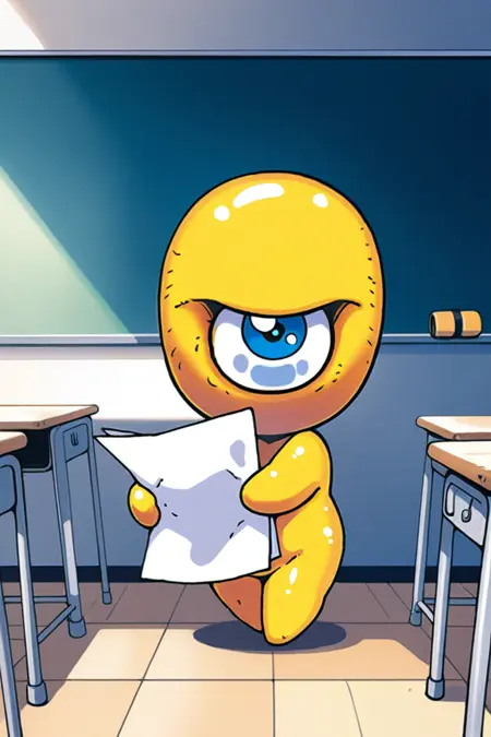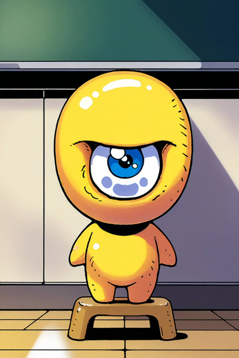 1monster, 1 monster, monster, cyclops, one-eyed, blue eyes, shiny skin, yellow skin, chibi, no humans