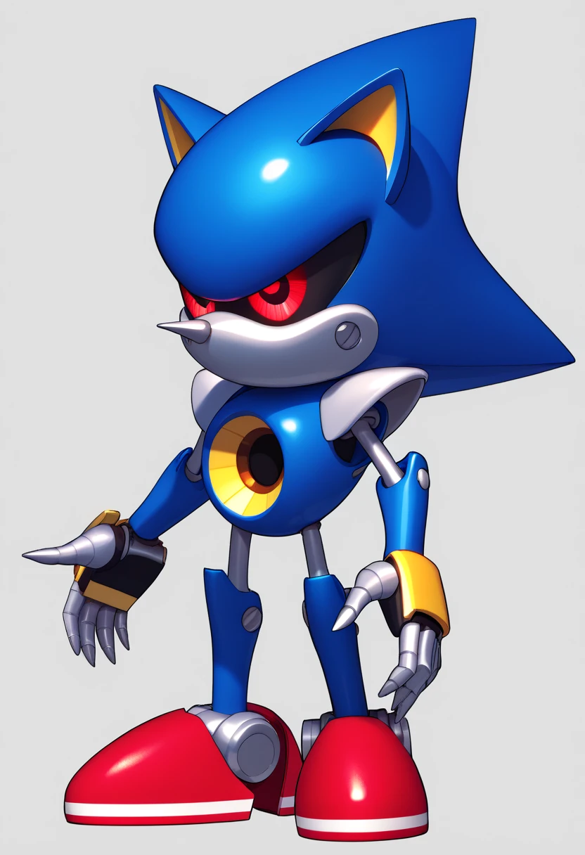 | トレーニングワード | ClassicMetalSonic, 1boy, robot, mecha, blue body, yellow circular depression in chest with a black center, metal fins on head, triangular ears, silver muzzle, silver shoulder plates, silver upper arms, silver legs, silver fingers, black palms, blue forearms, blue lower legs, blue torso, red shoes, red eyes, black sclera, colored sclera, shortコピーしました! |