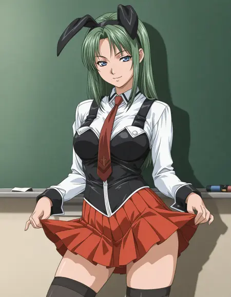 itou mika, green hair, long hair, hairband, rabbit ear hairband, blue eyes