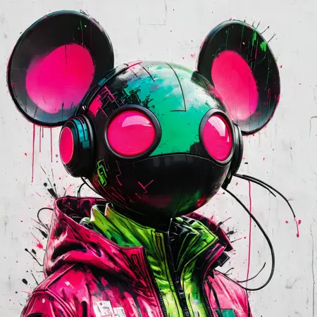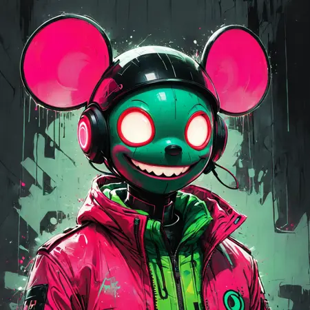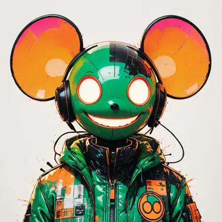 메타 마우스 스타일의 초상화를 보여주는 LoRA 모델. 적절한 결과를 얻기 위해 LoRA의 가중치를 조절하세요.