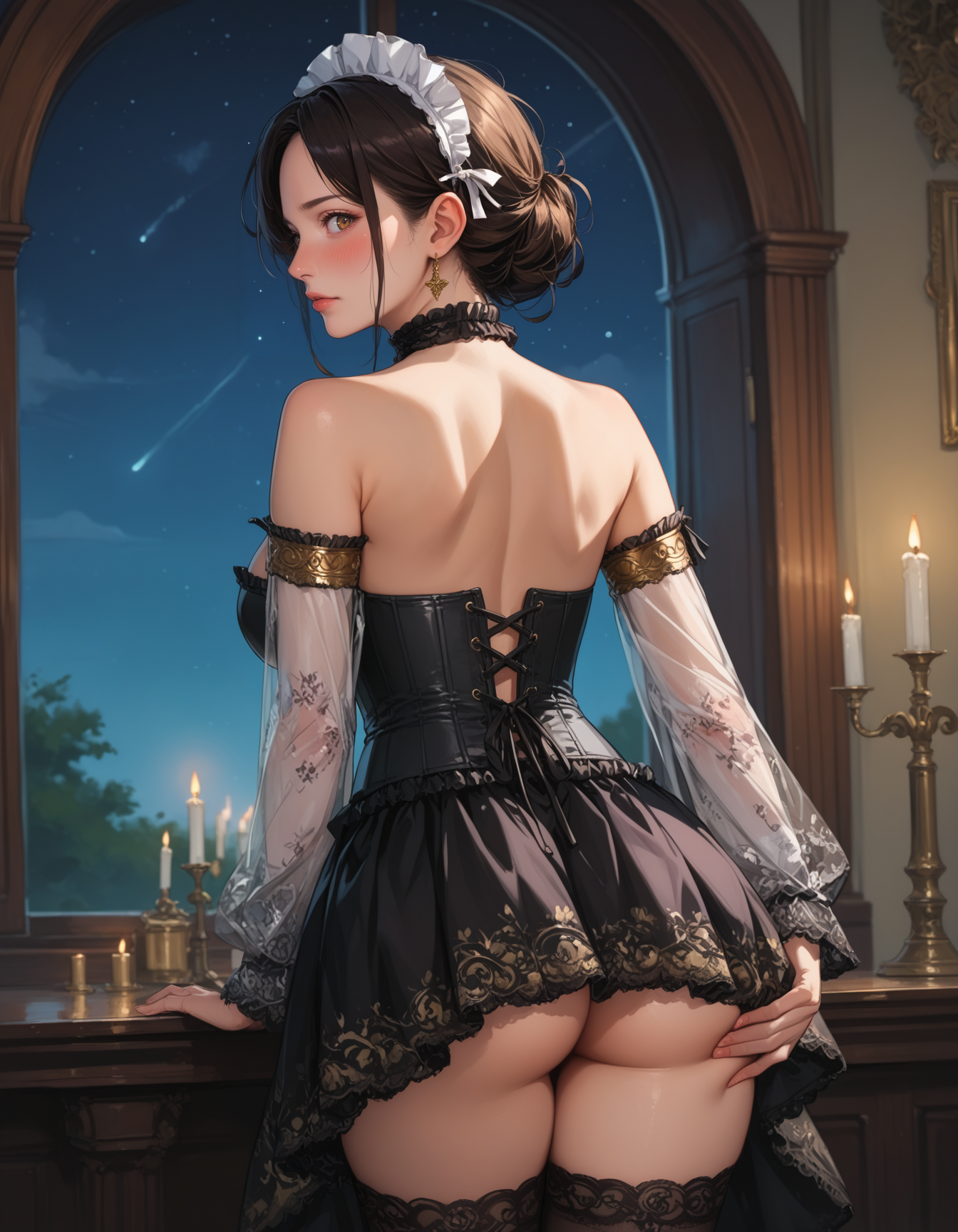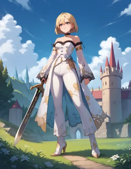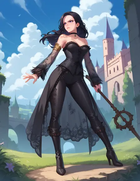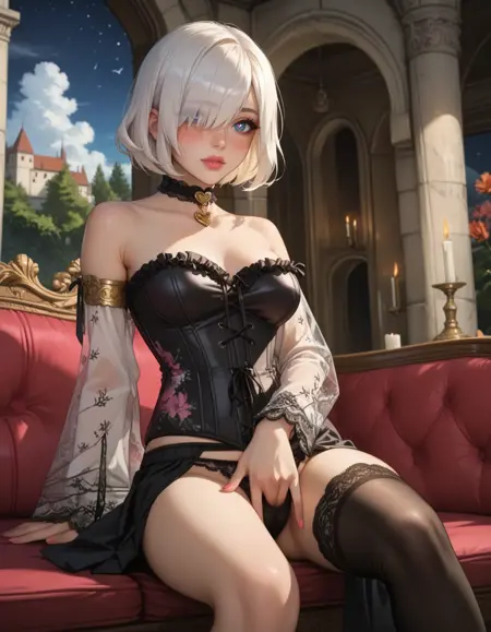 이것은 일부 이례적인 데이터셋, 태그링 및 크롭을 사용한 실험으로, 매우 멋지게 나왔습니다. 레이스 소매가 가장 재미있는 부분이며, 금색 팔찌와 중앙을 따라 뻗은 코르셋이 특징입니다. 재미로 O링을 추가했고, 겉치마/가죽 바지는 훈련 데이터에 포함되지 않았으므로 마음대로 이용하세요.