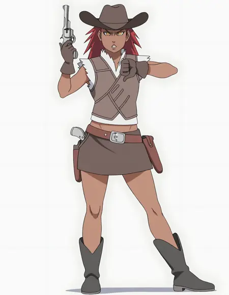 k2ru1, 1girl, dark-skinned female, red hair, white bandana, forehead protector,