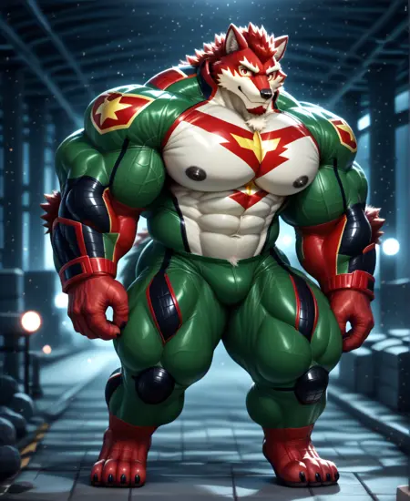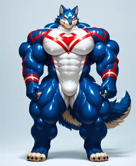 score_9, score_8_up, score_7_up, Fursuit, Kemono, Super Furry Hero, Hero Latex Uniform, Super Hero, Animal Hero, bodysuit, Hyper muscles, Hyper Muscular, Massive Muscles, Chiseled Abs, Verys Muscular Body, Muscles verys stronger pose; [?????.] (((Hero Red and white Battle Suit を着用)))