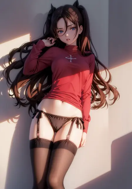 1女孩,冬木凛,单人,长发,及膝袜,裙子,蓝眼睛,黑色及膝袜,黑发