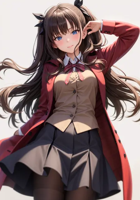 1女孩,单人,长发,裙子,连裤袜,冬木凛,衬衫,黑色裙子,白色衬衫,私立羽黑学园校服,衣服敞开,发带,外套,蓝眼睛,红色外套,棕色背心,长袖,有领衬衫,黑色连裤袜,校服,齐刘海,背心,棕色头发,外套敞开