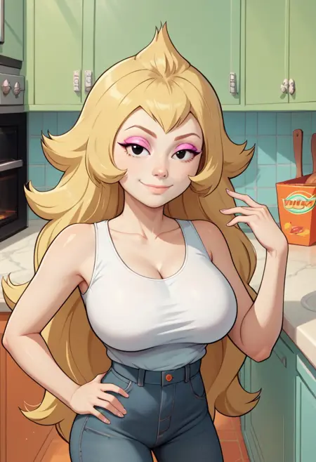 1girl, Solo, Vidalia_SU, 苍白的皮肤,黑色眼睛,金发,长波浪发,粉红色眼影