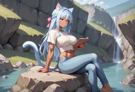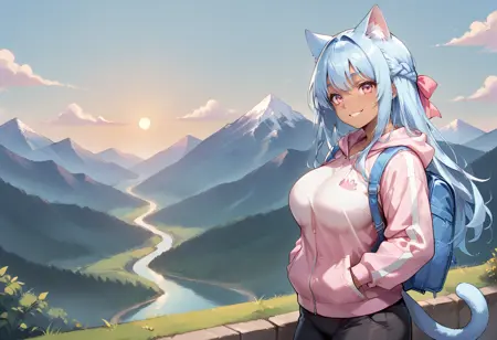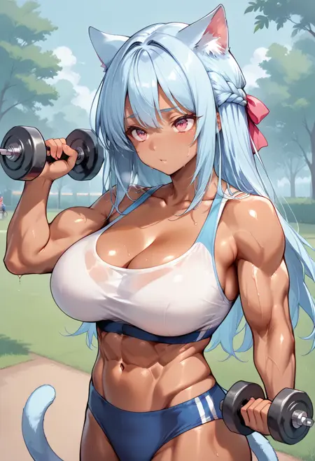 推荐提示:shizuka,大胸,肌肉女性,猫耳,猫尾,猫娘,古铜色皮肤,长发,蓝发,粉眼,法式辫子,发带,