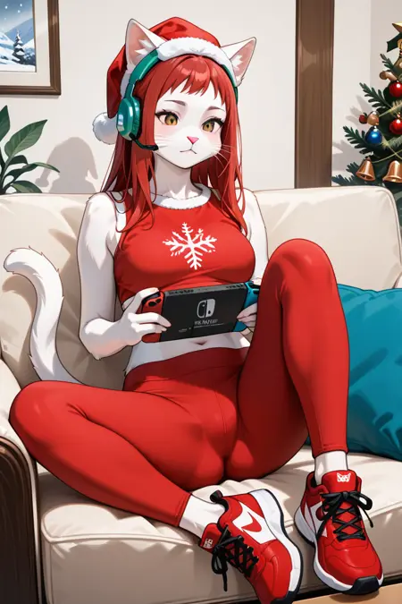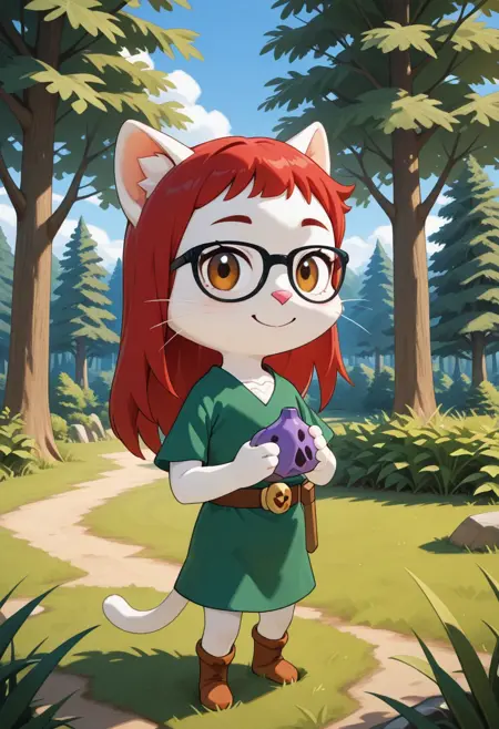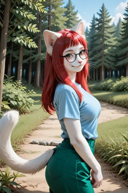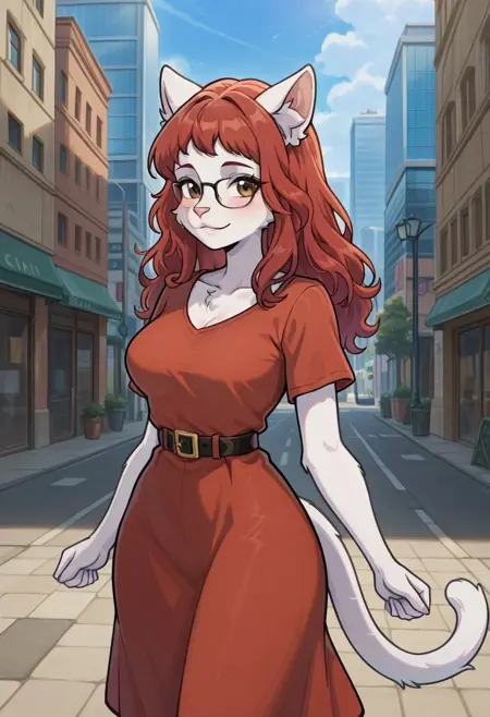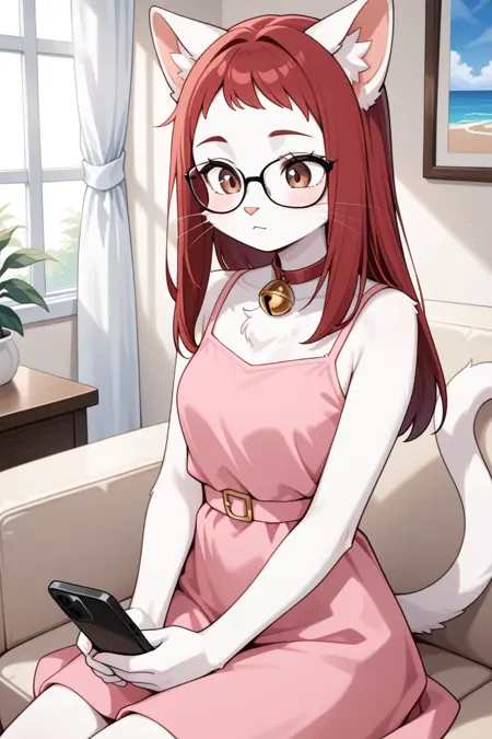 태그: bell4, anthro, 페르리 여성, 집고양이, 흰색 털, 흰색 몸체, 갈색 눈, 분홍색 코, 빨간 머리카락, 곧은 머리카락, 긴 머리카락, 짧은 앞머리, 고양이 귀, 고양이 꼬리
