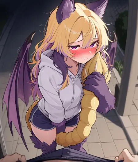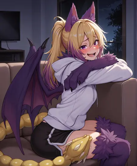 This version is mainly a test to figure out what needs fixing in V1.1, so some of the tags below may not work at all. You normally have to specify colours for the main features to work properly, the original design uses: "black fur, red hair, red tail, red wings, white mane, pink eyes"