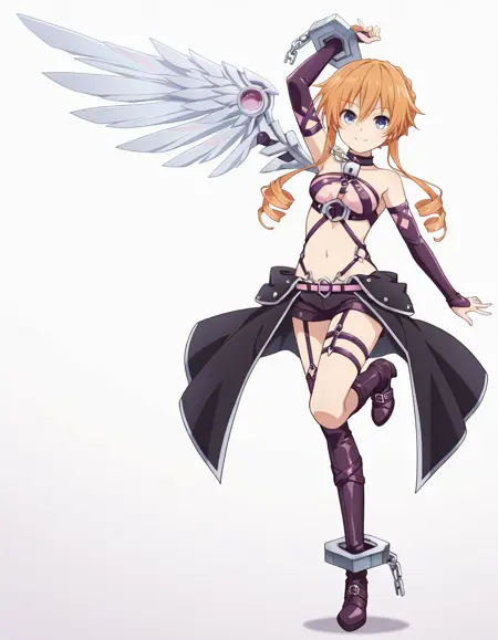 Kaguyaberserk, berserk_bondage_outfit, berserk_leg_cuffs, single leg_cuff, single handcuff, berserk_handcuffs, berserk_short_shorts, berserk_showgirl_skirt, berserk_padlock, berserk_thigh_boots, single wing, berserk_wing, chain