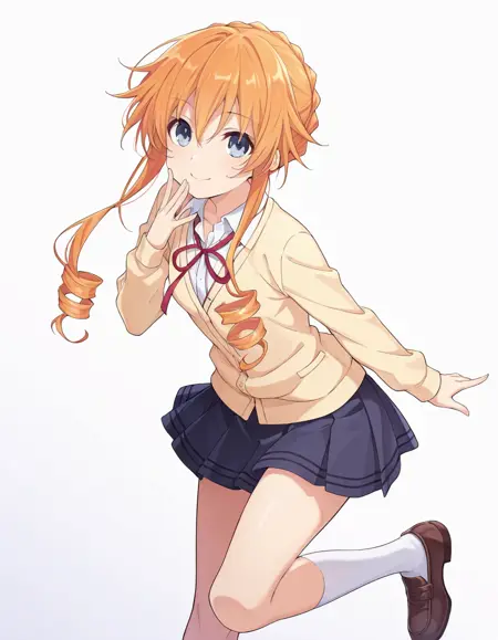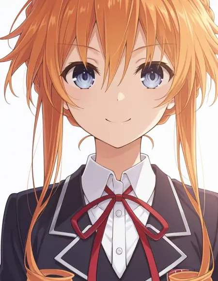 Kaguya, orange hair, blue eyes, drill sidelocks, braid
