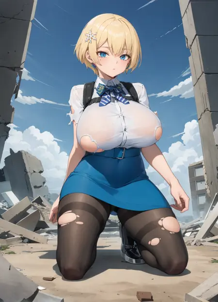 vsknormal,白色衬衫,蓝色裙子,连裤袜,雪花发饰,领结,短发