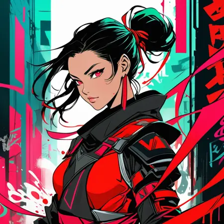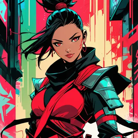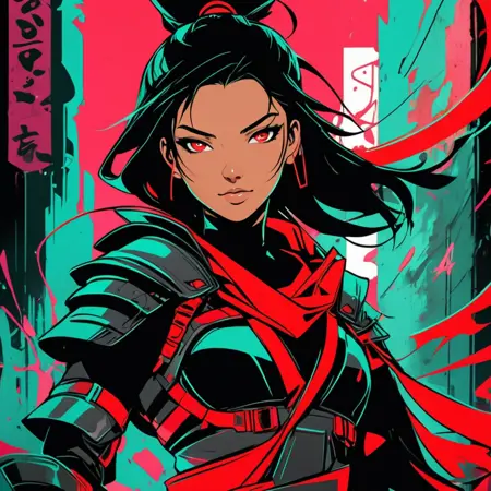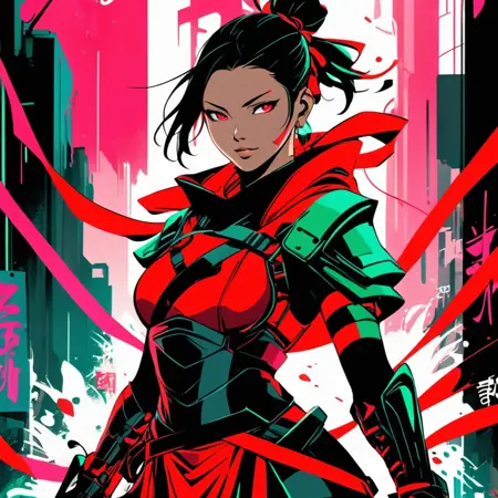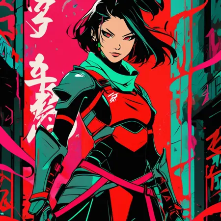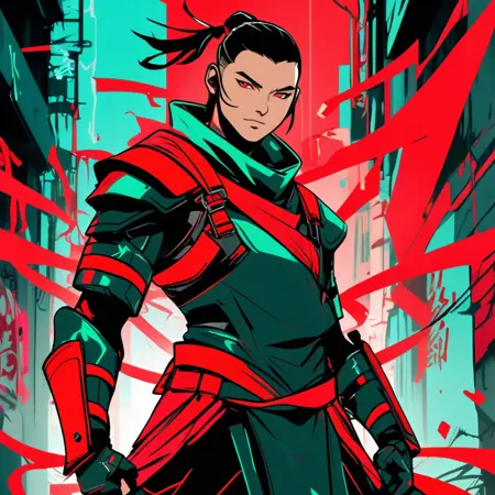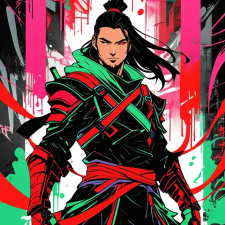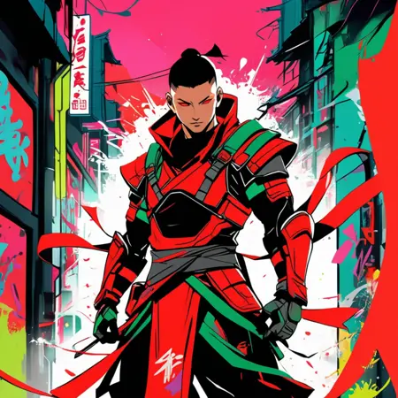 フラットな2Dイラストスタイルで描かれた武士僧を示すLoRAモデル。適切な結果を得るためにLoRAの重みを変更してください。
