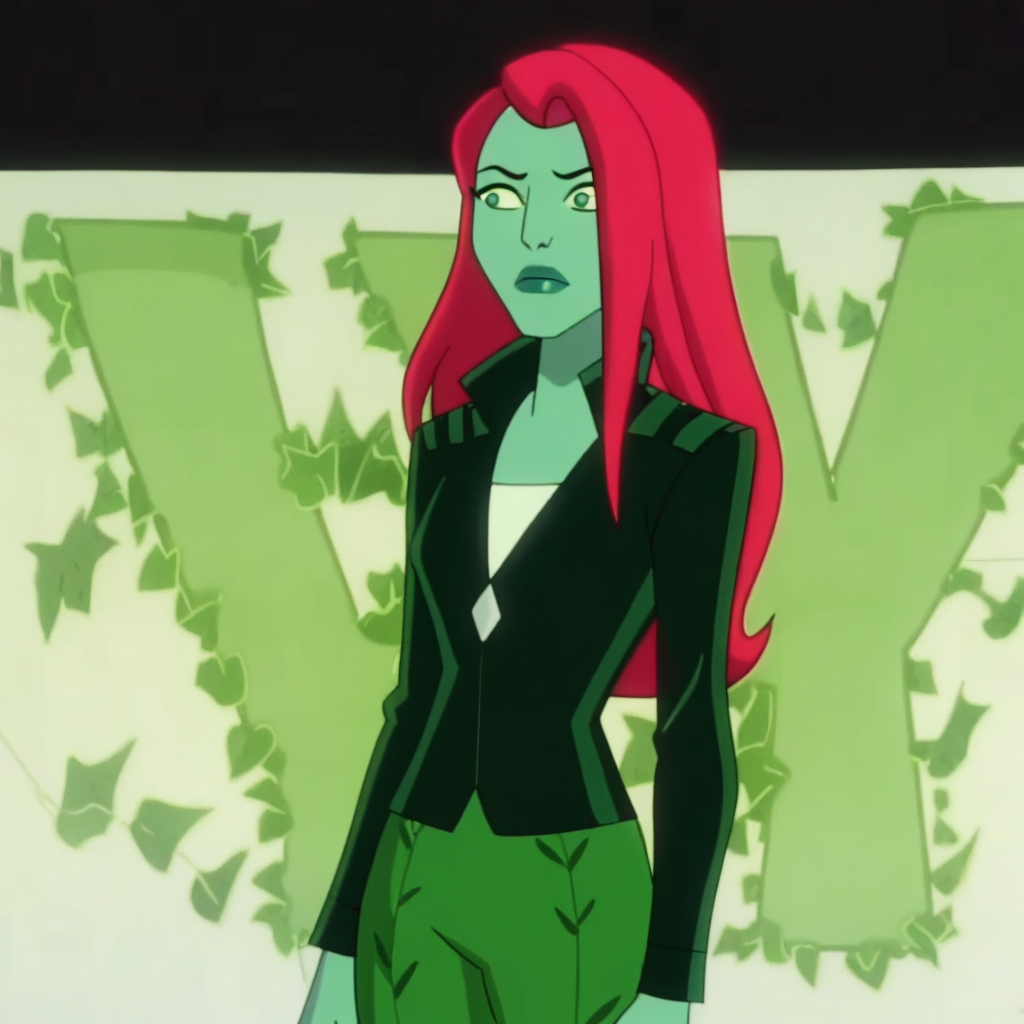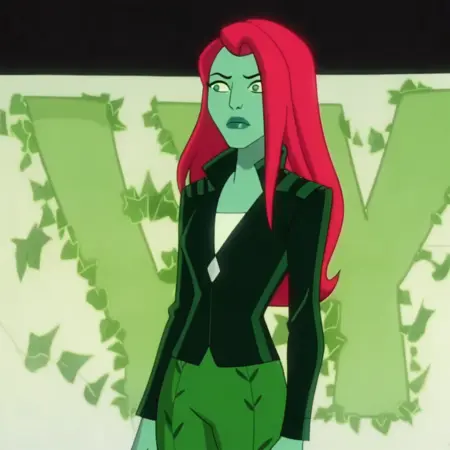 毒藤女,红发,彩色皮肤,长发,夹克,妆容,裤子,站立,口红,绿色裤子,绿色皮肤,毒藤女,1个女孩,单独,红发,彩色皮肤,长发,夹克,妆容,裤子,站立,口红,绿色裤子,绿色皮肤,沙漏型身材,绿色皮肤,绿眼,绿唇,长红发,绿色夹克,白色背心,带有叶脉和线条图案的绿色连裤袜,黑色高跟鞋,裸体,截图