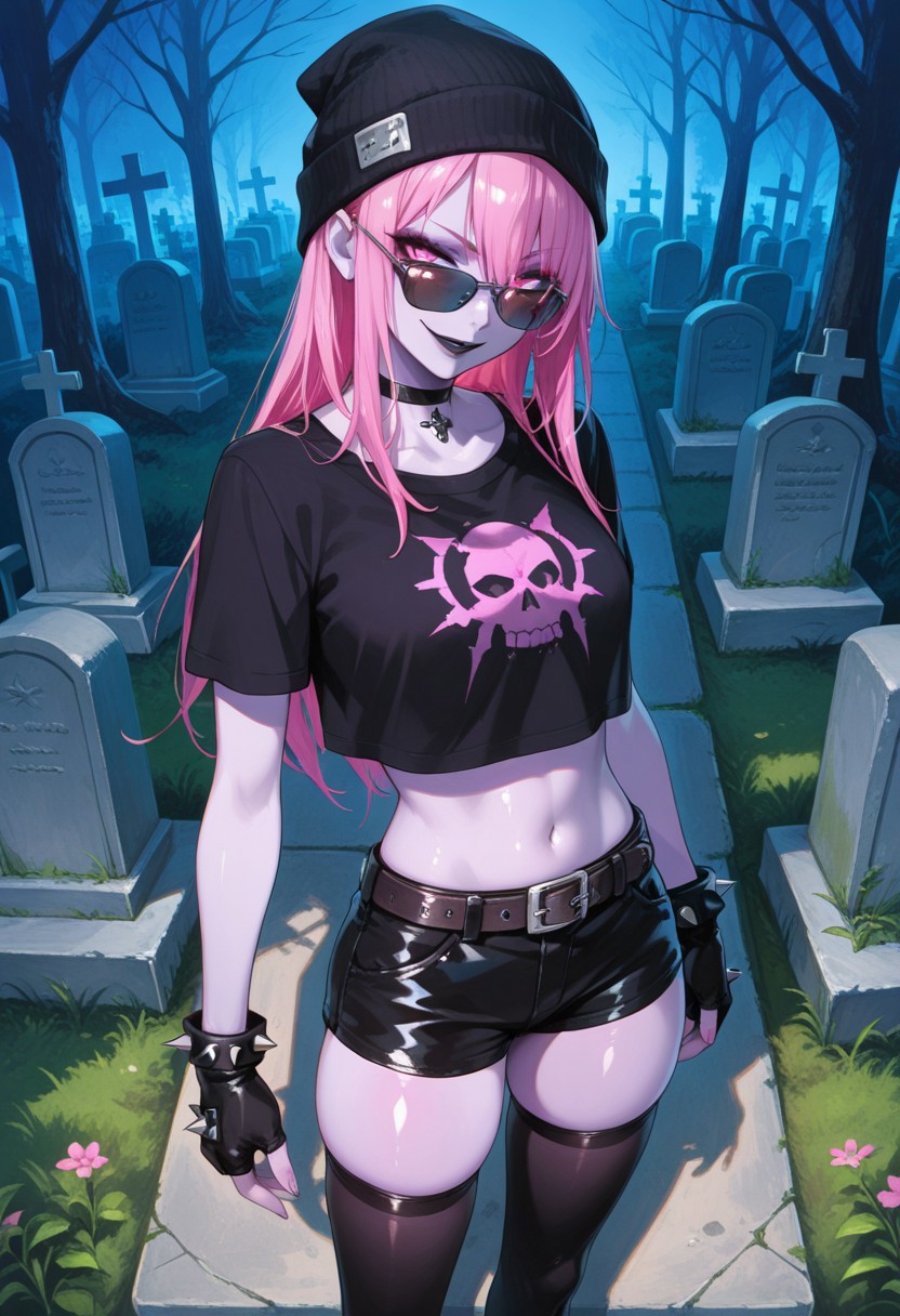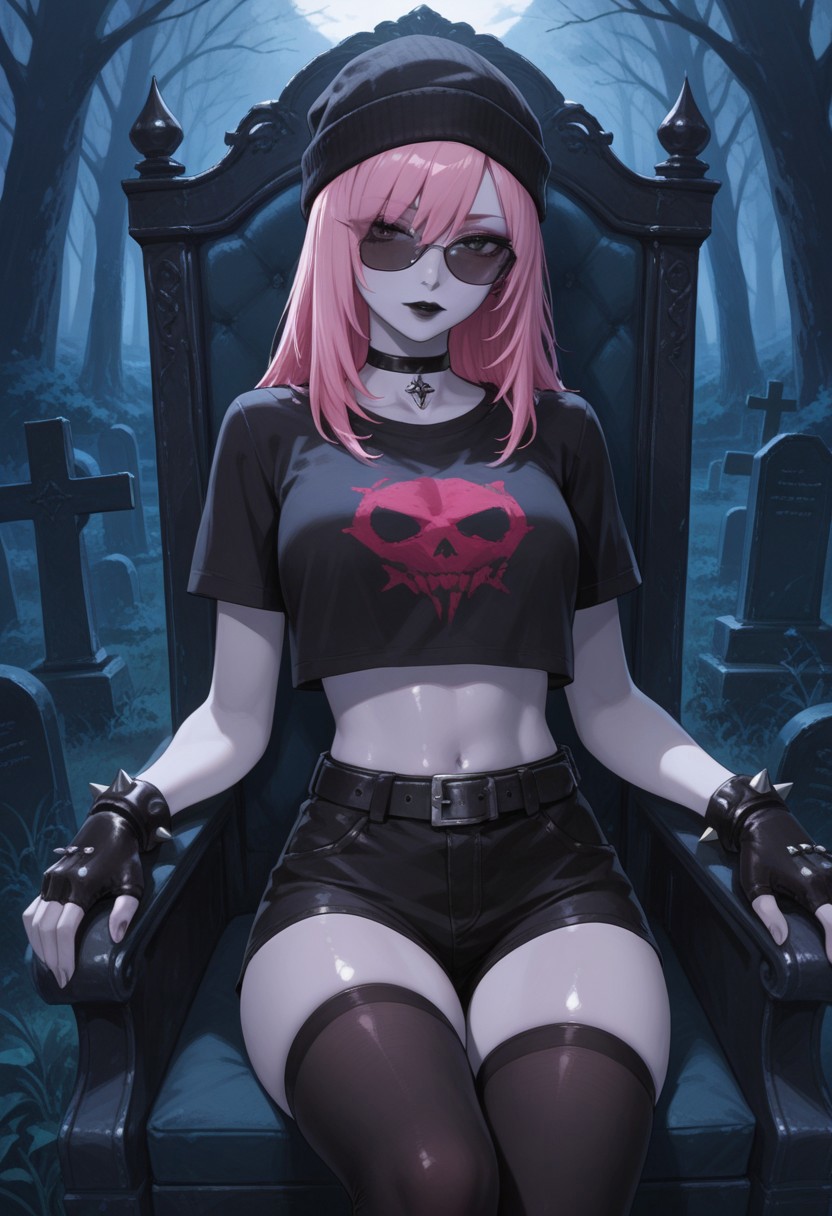 MidnightDuskF,彩色皮肤,灰色皮肤,长发,粉发,黑唇,口红,珠宝,
