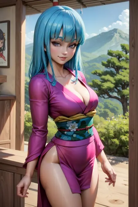 About the LoRA, her appereance is maron, blue eyes, aqua hair,blunt bangs, long hair. As always, I'll leave examples in the gallery, I didn't inpaint anything or adetailer, so there's always room for improvement. All the pictures are made with weight 1. She's very flexible... wink wink. So much that her anime clothes don't come exactly as they were.