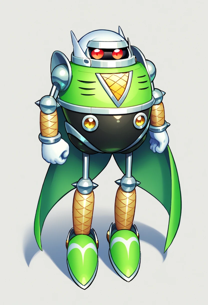 | 训练词汇 | HeavyShinobi, 1boy, no humans, robo, mecha, fully egg-shaped humanoid robot, Decorated as a ninja, green haori, yellow-triangular cross-pattern chest piece, black bottom torso, red eyes, gray appendages, green zōri-like forefeet, dark green scarf,已复制! |