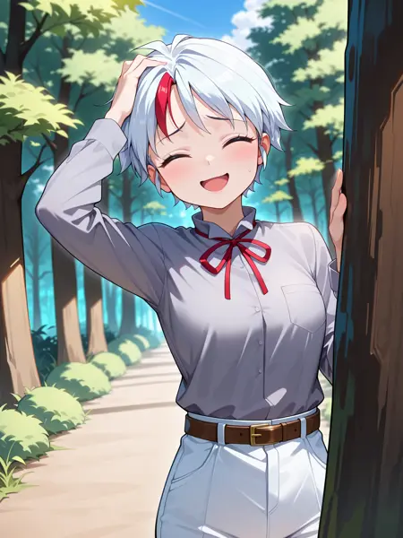 主提示词为:towaIllustrious,短发,红眼,白发,红发,多色发,双色发,挑染发
