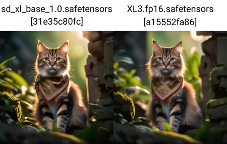 这是 XL 1.0 基础模型与精炼器的合并版本,我还直接合并了偏移 LoRA。在我看来,它有时能生成比普通 1.0 基础模型更好的图像,并且在 fp16 下表现更优。此处所有图像均未使用精炼器。
