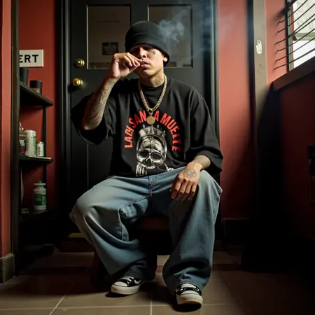 체로스와 치카노스 플럭스는 다양한 바리오, 체로, 프론테라 스타일, 치카노 스타일 및 미학을 결합하여, 독특하고 기괴하며 위험한 원래의 체로 룩을 창조합니다. 이 LoRA를 사용해 창작물에 체로/치카노 스타일을 추가하고, 도시의 체로 남성을 끌어내세요. 이 아트워크는 각각의 창작물에 프론테라의 라틴 스타일 — 독특하고 눈에 띄며 기괴한(어떤 이에게는 위험하고 나쁜 맛으로 보일 수 있음) 라틴 문화를 포착한 다양한 옷차림과 룩을 담고 있습니다. 이 스타일은 라틴, 히스패닉 멕시코 문화 및 감각성의 시각적 언어에 기반합니다. 체로 정신이 당신을 지배하게 하세요!
