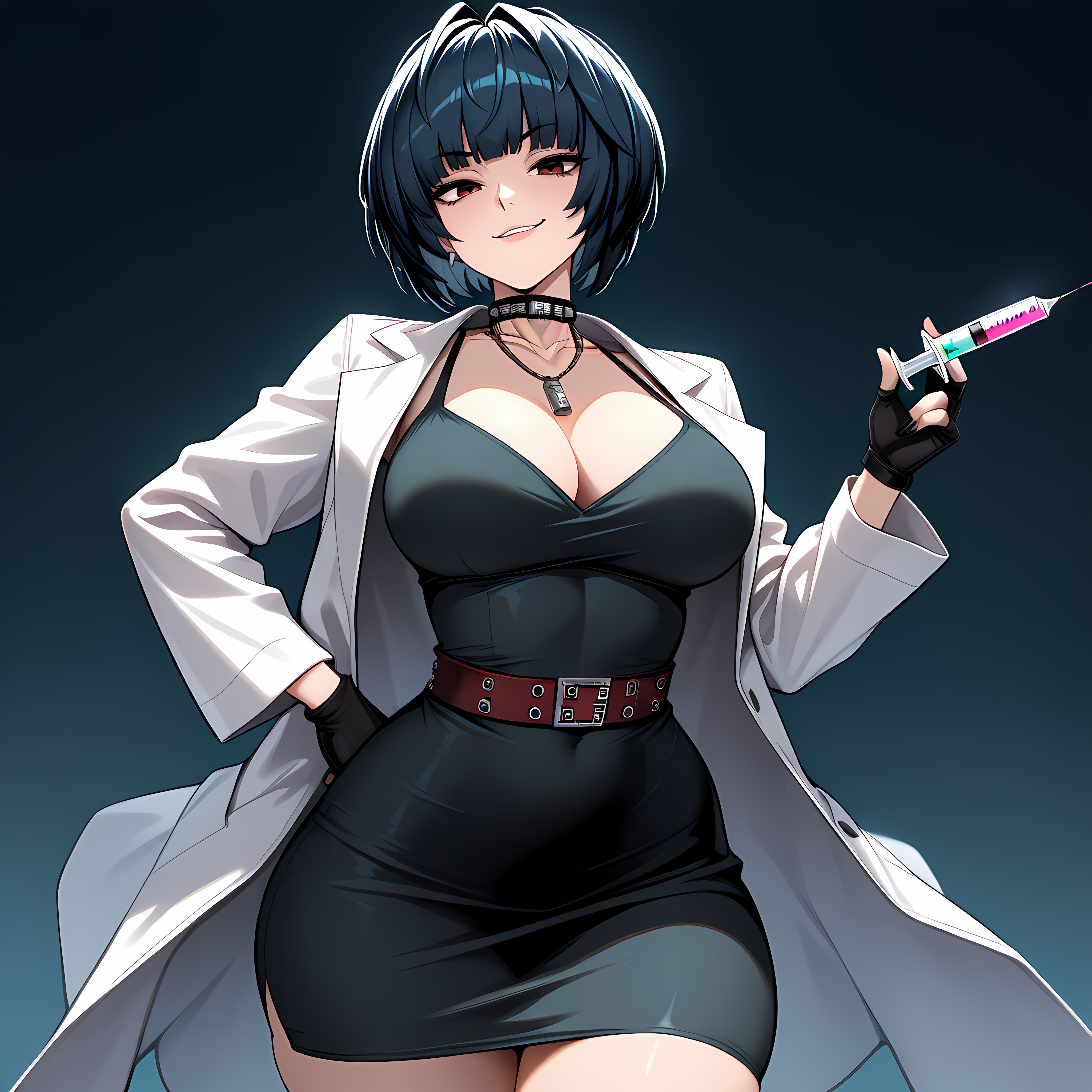 オプション:錠剤、舌を出している、注射器、薬瓶、舌の上の錠剤、注射器を持っている、薬瓶を持っている、