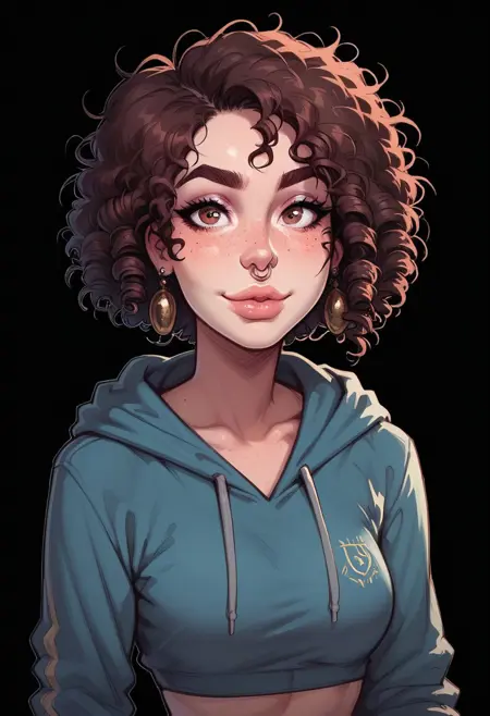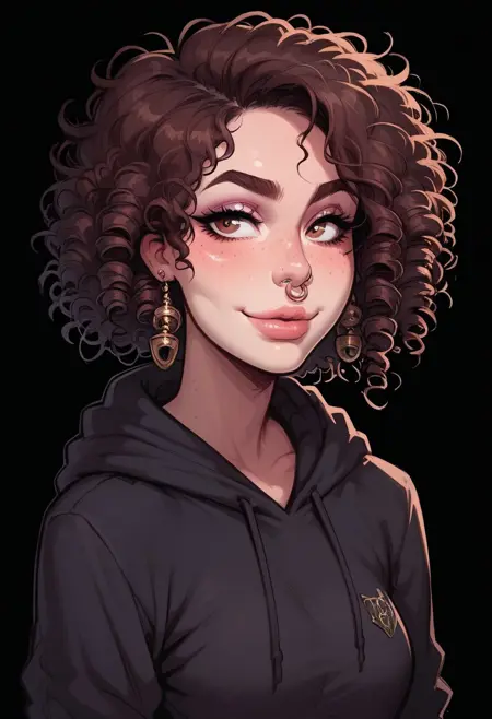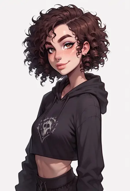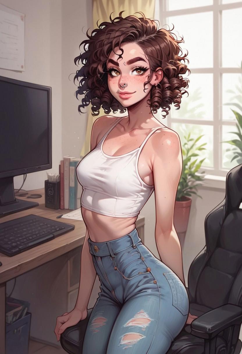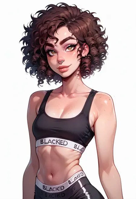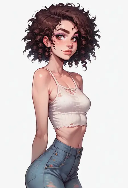 1girl, 갈색 머리, 어수선한 머리, 곱슬머리, 단발
