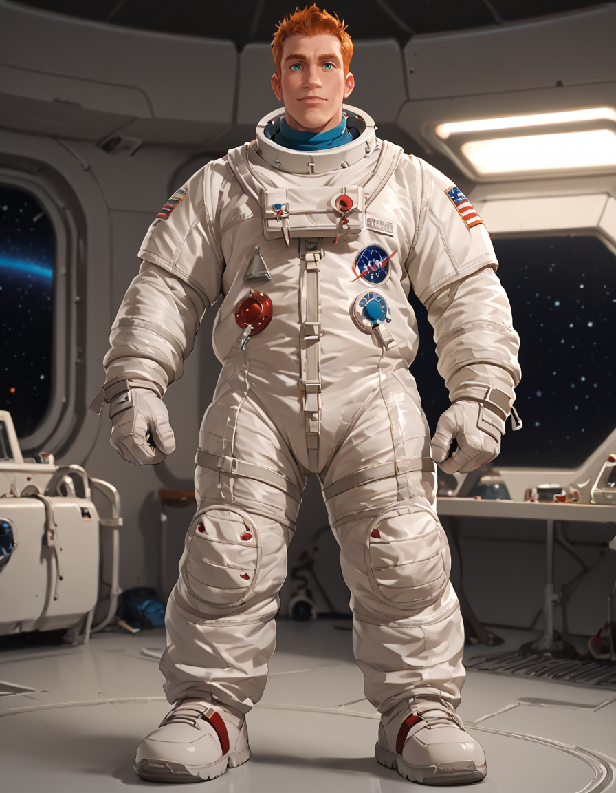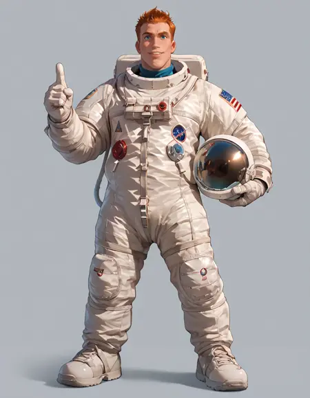V1 是我首次发布的版本,大部分训练图像是我在观影时截取的。我还偷偷加入了一些不适宜公开的图像,以训练他脱下宇航服后的样子 😜。它的生成效果还不错,至少脸部始终一致(相比之下,宇航服就不太稳定)。