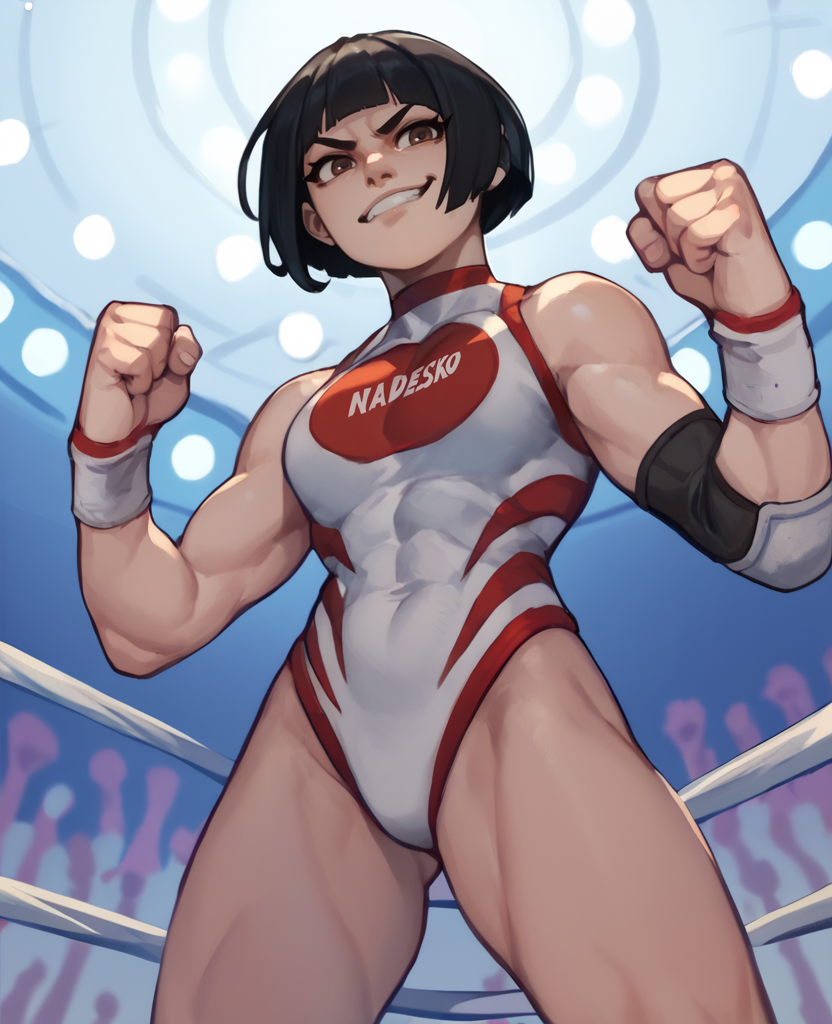 - leotard, design may vary - may have to specify red circle on front and Japanese's text on back if facing away or putting nadeshiko, when inpainting may help accuracy