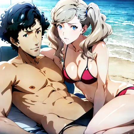 Add "1boy, 1girl, kamoshida_anne, hetero," in your prompt.