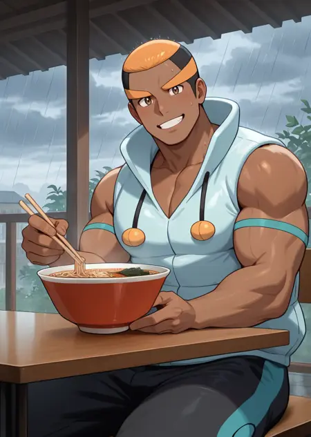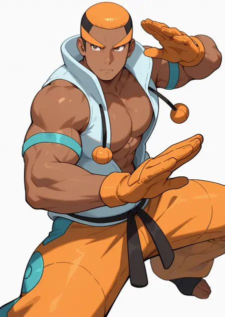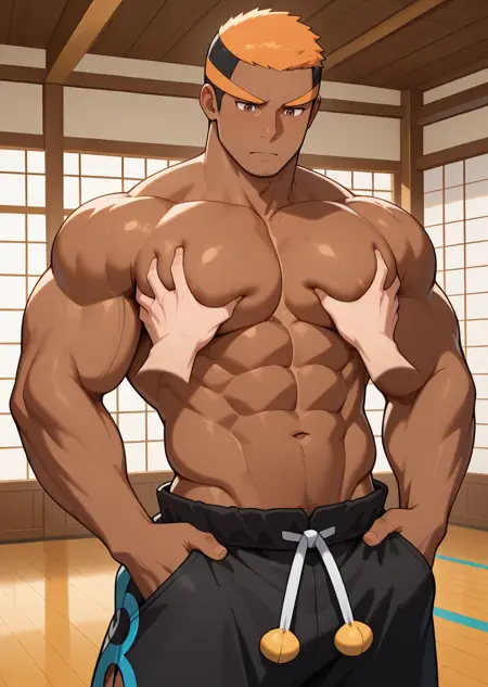 I made this yellow haired muscular dude, Marshal, from Pokemon Black and White. Marshal is one of Unova's Elite Four. He specialized Fighting-Type as his mastery type. Known as his stoic and serious tone. Idk why I'm made this guy, but I made it. I use 50+ images of him from Google and Pixiv for dataset.