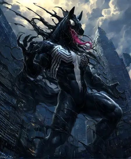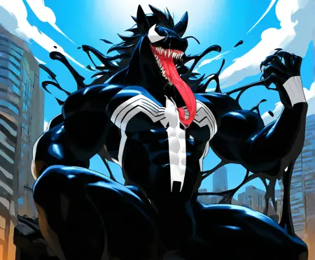 일반적으로 Venom 캐릭터 LoRA로 사용: Venom, black body, white markings, long tongue, body suit