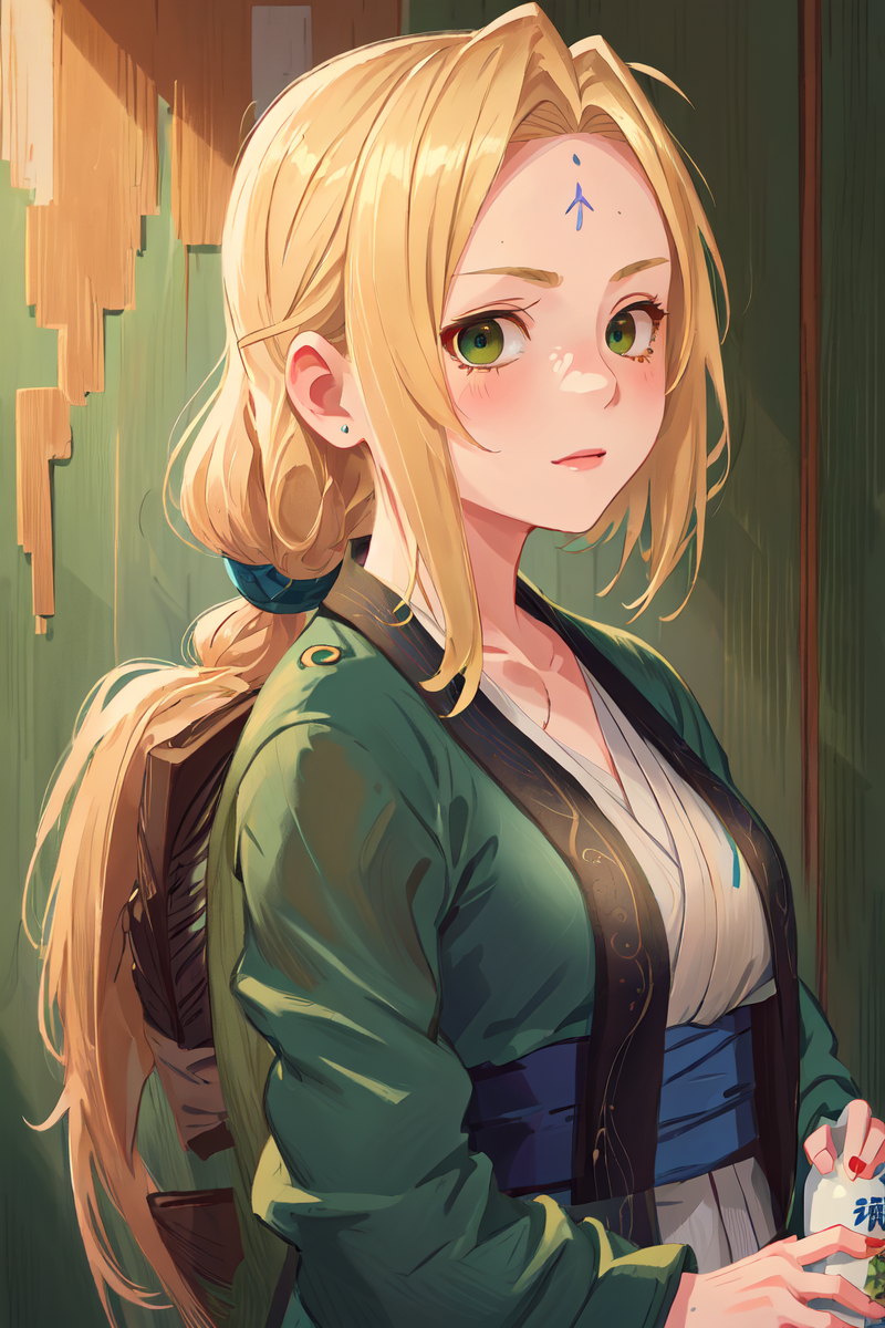 这是《火影忍者》中纲手·千手的角色LoRA。V1.0基于AbyssOrangeMix2_hard模型训练,V1.1基于NovelAI训练。
