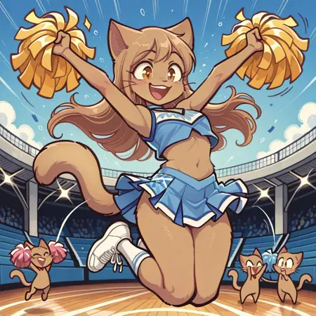 Cat, catgirl, light brown fur, amber eyes, long hair, cat tail,