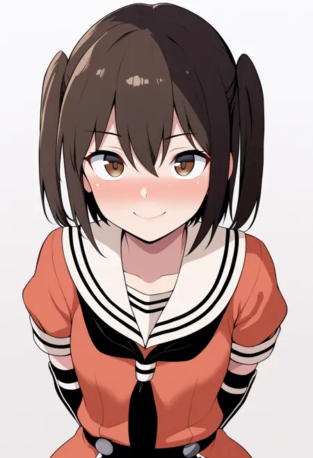 基础提示词:1girl, sendai \(kancolle\), 刘海, 棕色眼睛, 棕色头发, 两侧向上扎起, 短发