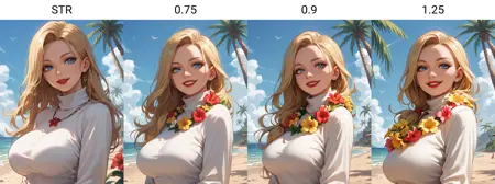 다른 체크포인트는 다른 강도를 요구합니다. 일부는 강도가 1.0 미만일 때 더 잘 작동하고, 일부는 강도가 1.0 초과일 때 더 잘 작동합니다.