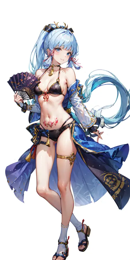 之所以起这个名字,是因为很擅长出原神人物,训练集里也有很多原神角色,可以用来生成一种立绘风格,特点是“涩涩”,很擅长画那种战损版服装,比如破洞的丝袜之类的,你懂的;画那种系带泳装也是一绝。立绘的触发词是[(white background:1.5)::5],不只限于画立绘,也可以生成其他类型的图,但主要都是涩图。顺便一提,它不能直接生成特定人物,还需要搭配其他角色lora,并将权重适当降低至0.8左右。