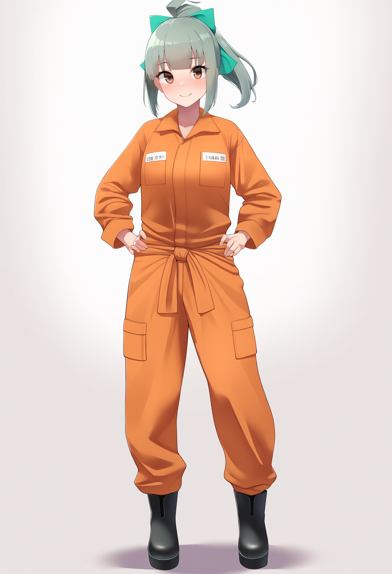 Basic prompts : 1girl, yuubari \(kancolle\), grey hair, ponytail, bangs, brown eyes, green hair bow